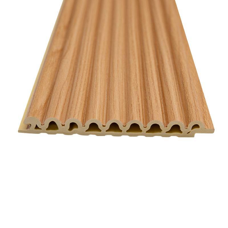 Panele kratowe 202 wykonane są z mąki drzewnej i proszku wapniowego poprzez prasowanie na gorąco w wysokiej temperaturze. Dzięki szerokości 202 mm i delikatnej fakturze zapewniają izolację akustyczną, trwałość oraz odporność na wilgoć i pleśń, dzięki czemu nadają się zarówno do suchych środowisk, zarówno w domu, jak i w miejscu pracy, oferując zarówno praktyczność, jak i estetykę. Strategiczne połączenie mączki drzewnej i proszku wapniowego buforuje fale dźwiękowe, redukując przenoszenie hałasu i eliminując potrzebę stosowania dodatkowych materiałów dźwiękochłonnych. Proszek wapniowy nadaje wysoką twardość, odporność na zarysowania i odkształcenia, dzięki czemu są wystarczająco trwałe, aby wytrzymać codzienne uderzenia i częste użytkowanie. Specjalny proces zapobiega wchłanianiu wilgoci, dzięki czemu są mniej podatne na pleśń i wypaczanie nawet w suchym środowisku, co zmniejsza problemy związane z konserwacją.